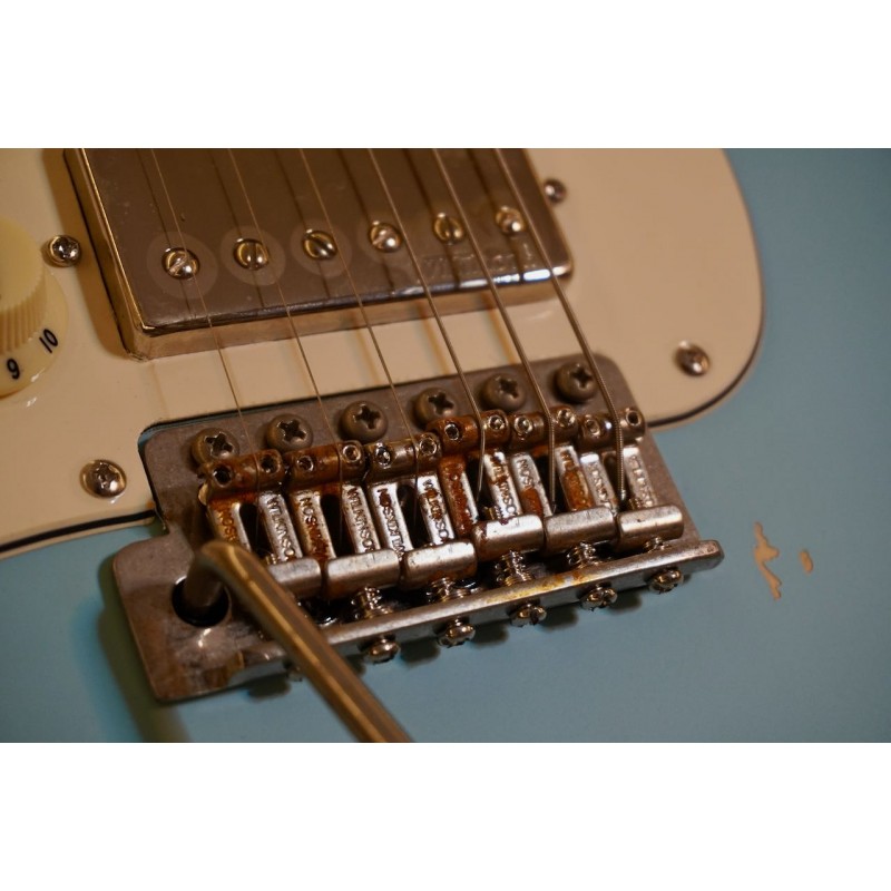 The Wilkinson WVC vibrato bridge featured on the Vintage V6 is a masterpiece of detail.
