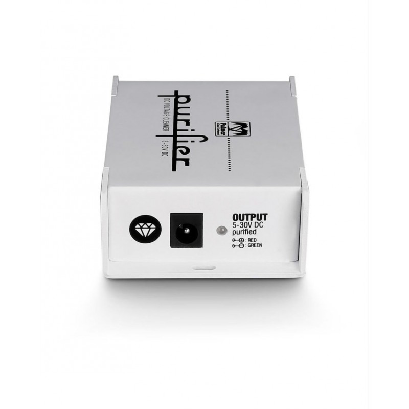Diseñado especialmente para el uso con los pedales de efectos y pedaleras, el purificador minimiza y elimina el ruido inducido por la mala DC adaptador de corriente de la construcción entrega de alimentación de CC limpia para sus pedales. Proporciona conectores jack estándar de 2,1 x 5,5 mm y detecta automáticamente la polaridad de su fuente de alimentación de CC. El purificador limpia cualquier tensión de salida de 5 a 30 voltios de corriente continua.