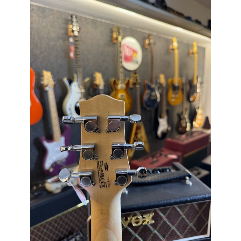 También cuenta con clavijeros de afinación de alta relación de transmisión especialmente diseñados para guitarras de escala corta para permitir una afinación fácil y precisa.