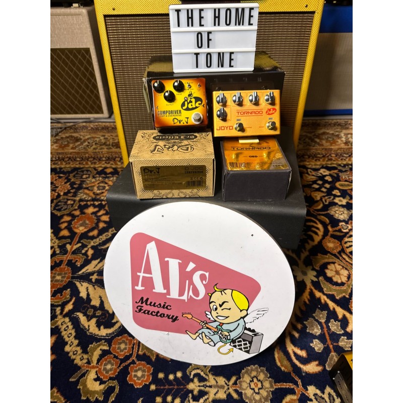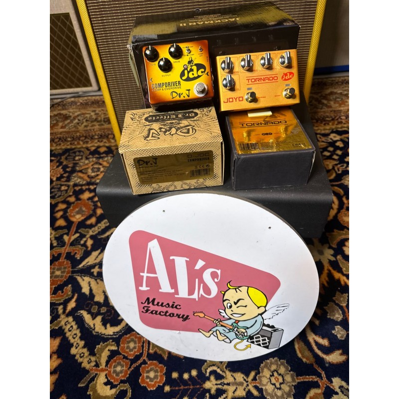Un pedal diseñado por José De Castro “JOPI” y fabricado por Dr. J (La Custom Shop de JOYO), que combina un overdrive con controles de Tone/Output/Drive, y un efecto de compresor con dos mini-conmutadores de palanca: El primero nos permite activarlo/desactivarlo de forma independiente, y el segundo cambiar su posición en la ruta de la señal, de forma que podemos elegir tener el compresor antes o después del overdrive