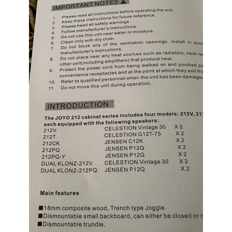 The heavy duty build of the JOYO 212V provides ultimate longevity and performance. Constructed with 18mm plywood, the top-mounted carry hand and heavy side handles make this cabinet portable and easy to transport. Metal corner protectors prevent any damage from bumps and knocks when performing live or on the move.