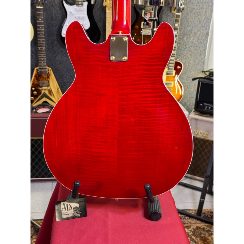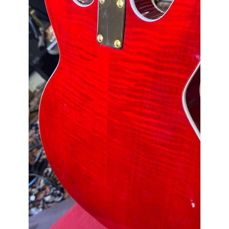 SpecsBody5-Ply Canadian Flame Maple Ply ConstructionStyleHollow Double Cutaway, Bound f-HolesBindingMultiplyNeckBolt-On Neck - Canadian Hard MapleTrussrodH-Expander™FingerboardResinator™Scale Length24.56” (624 mm)Radius15”InlaysPearloid Block InlaysFrets22 Medium JumboNutGraphTech TusqNut Width40mmPickups2 x Hagstrom H-52 AlNiCo 5 Gold Mini Humbucker Pickups w/ coil splitSwitch3-Way Toggle Switch - Gold FinishControls2 x Volume Control / 2 x ToneBridgeLong Throw Tune-O-Matic BridgeTailpieceHagstrom Trapeze Tailpiece - Gold FinishTuning KeysHagstrom 18:1 Chrome Die Cast Tuners - Gold FinishStringsD’Addario (10-46)