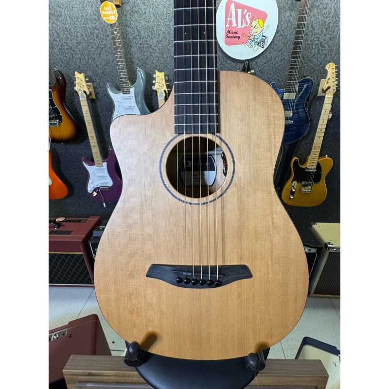 The Pioneer ER features elegant black binding that enhances its sleek appearance, highlighting the natural beauty of its all-solid top, back, and sides.
