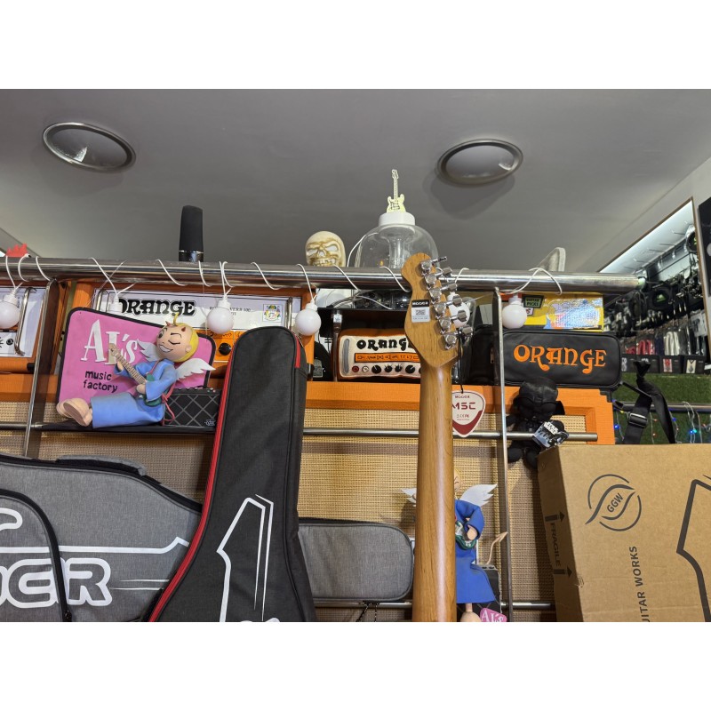 • Cuerpo de álamo con un mástil atornillado de arce tostado y acabado satinado. El uso de arce tostado mejora la estabilidad del instrumento y previene daños en el mástil.