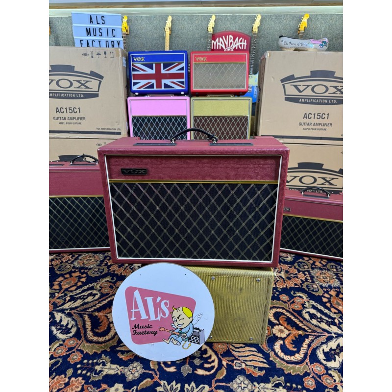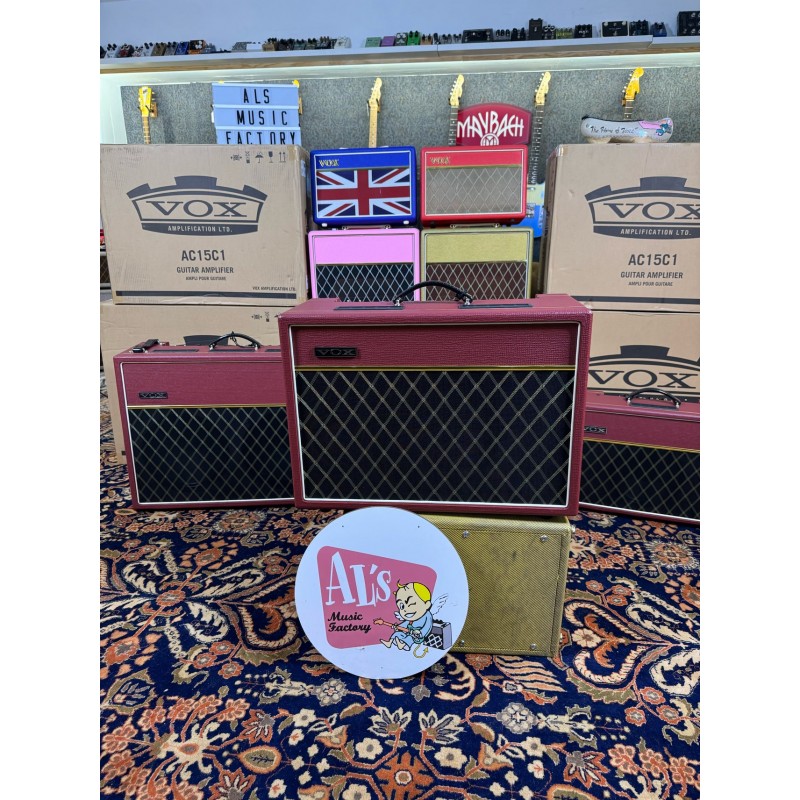 The AC15 is now available in the limited Classic Vintage Red cosmetics, with vintage red tolex, black & gold fret cloth, and vintage VOX logo badge.